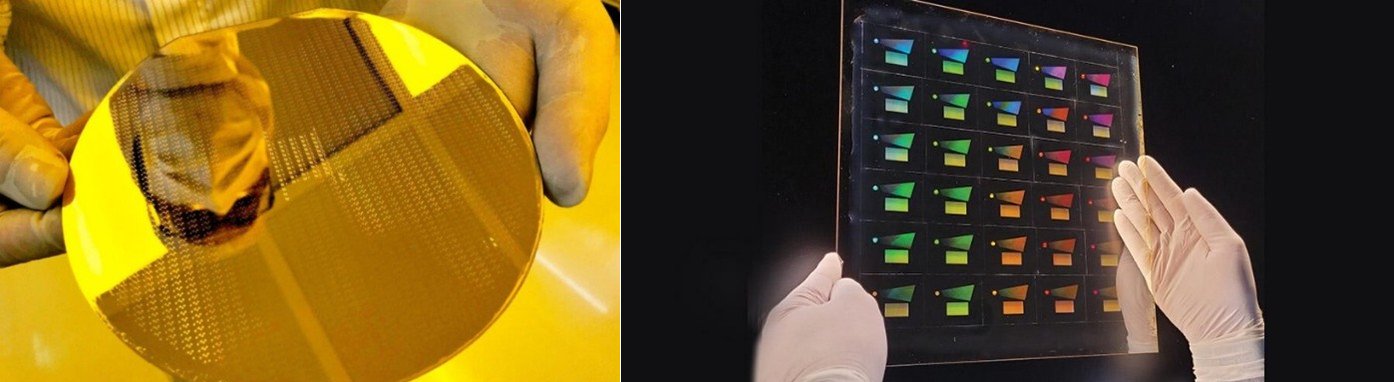 - On-chip gratings and Micro-Lens-Arrays (MLAs) – NIL on 200 mm wafers enables cost-effective replication of grating couplers and waveguide elements for silicon photonics directly on integrated circuits and emitters like VCSELs and micro-LEDs.